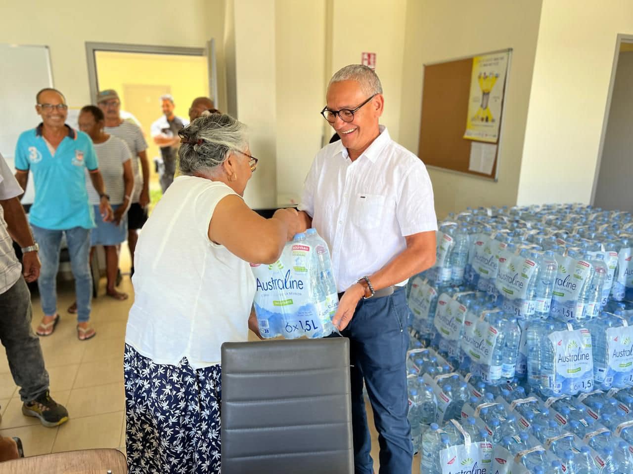 Le Maire, et Président du CCAS, Joé BÉDIER, en compagnie des équipes de la collectivité et du CCAS, poursuit ces visites terrain afin de vérifier lui même la bonne mise en place des dispositifs (citerne, distribution bouteilles d’eau…).